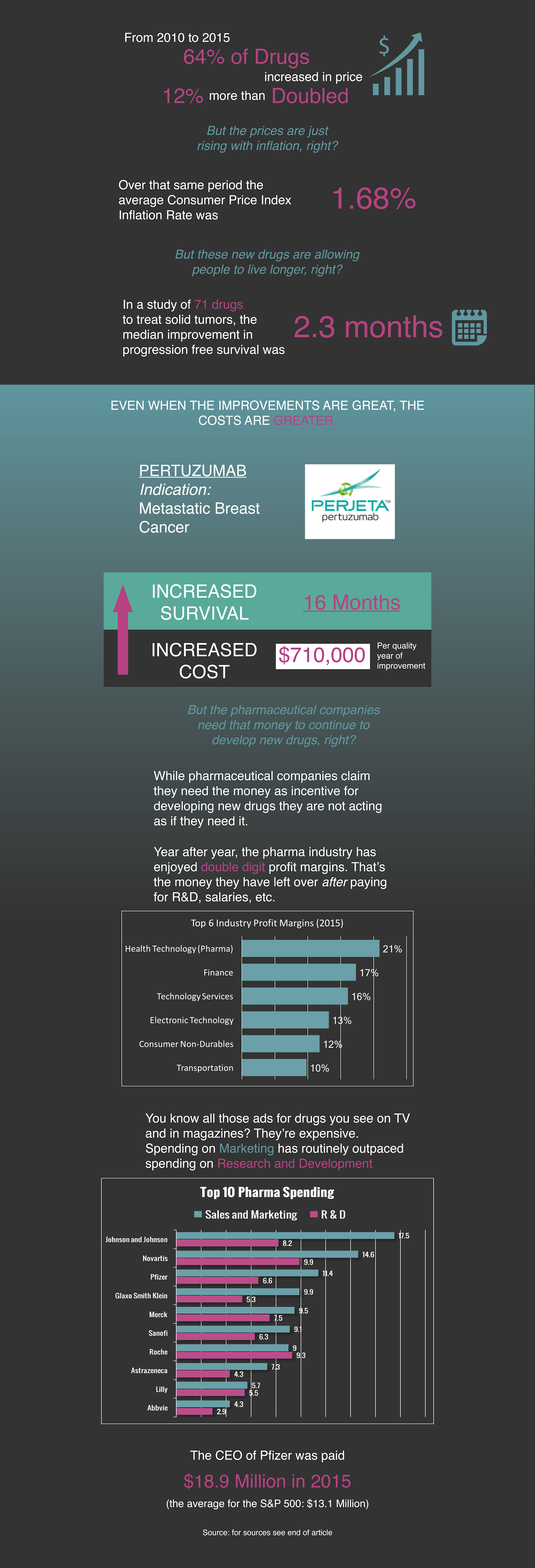 The skyrocketing costs of pharmaceuticals are a major culprit in the financial burden to the patient. Cancer pharmaceuticals